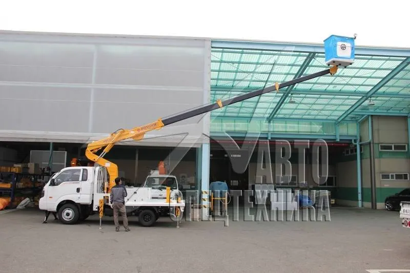 Автовышка Donghae DHS15AP корейского производителя Donghae Machinery подходит для работ в сферах городского и коммунального хозяйства в Тамбове: выполнение электромонтажных работ, монтаж рекламных щитов и конструкций, ремонт кабельных линий. Также может использоваться в строительных работах. Она состоит из бортовой платформы и крановой установки с рабочей высотой стрелы 14,5 м.