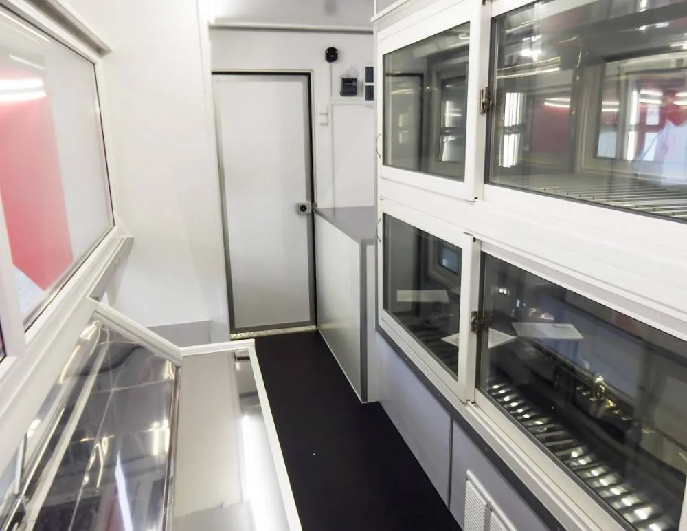 Внутренние размеры фургона 4700х2080х2030 мм. Передвижной магазин представляет собой шасси с автолавкой, которая включает в себя удобный холодильный шкаф с витриной и гардеробный шкаф с дверью. В ДЖАК 75 предусмотрено автономное водоснабжение.