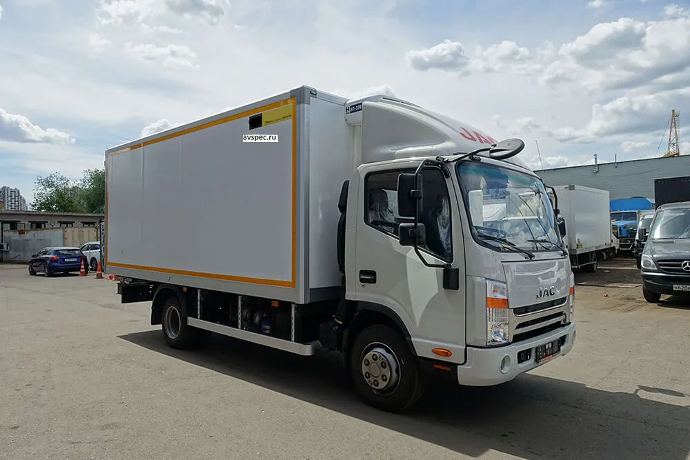 Рефрижератор JAC 80 имеет полную массу до 7,9 т. Является идеальной альтернативой другим грузовикам в рамках внутри и межгородских перевозок продуктов питания или любых других температурных грузов.