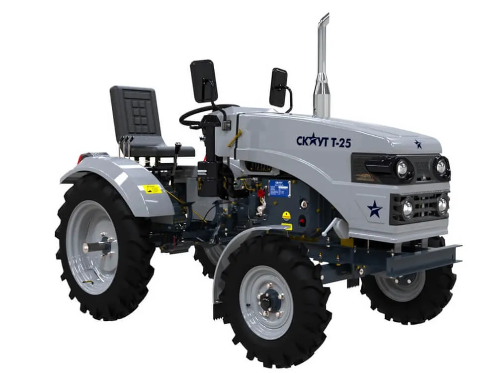 Трактор Скаут Т-25 является одним из наиболее передовых образцов техники модельного ряда Скаут. Это флагман поколения, с максимальной комплектацией и улучшенными характеристиками. Работоспособность и характеристики при нагрузках были проверены Санкт-Петербургским аграрным университетом. Так, были проведены тесты нагрузок на тяжелых почвах, испытания на стенде для определения динамических и тяговых показателей, определены максимальные значения углов опрокидывания.